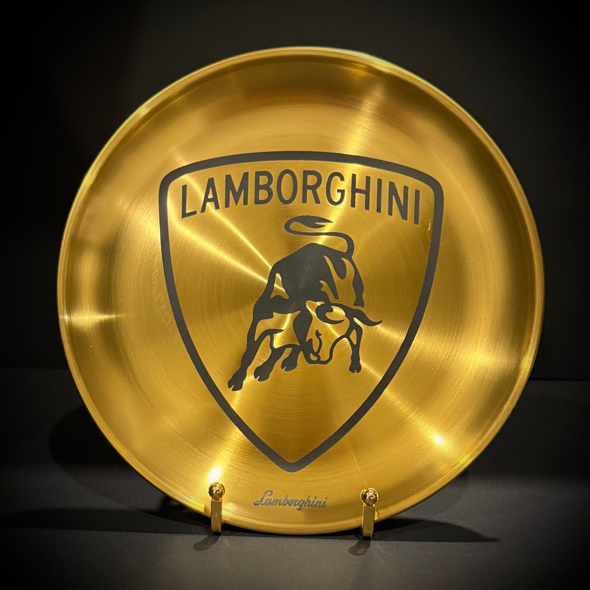 The plate features a precision-engraved bull-inspired crest, symbolizing power, motion, and performance—perfect for display in offices, studios, showrooms, or personal collections.